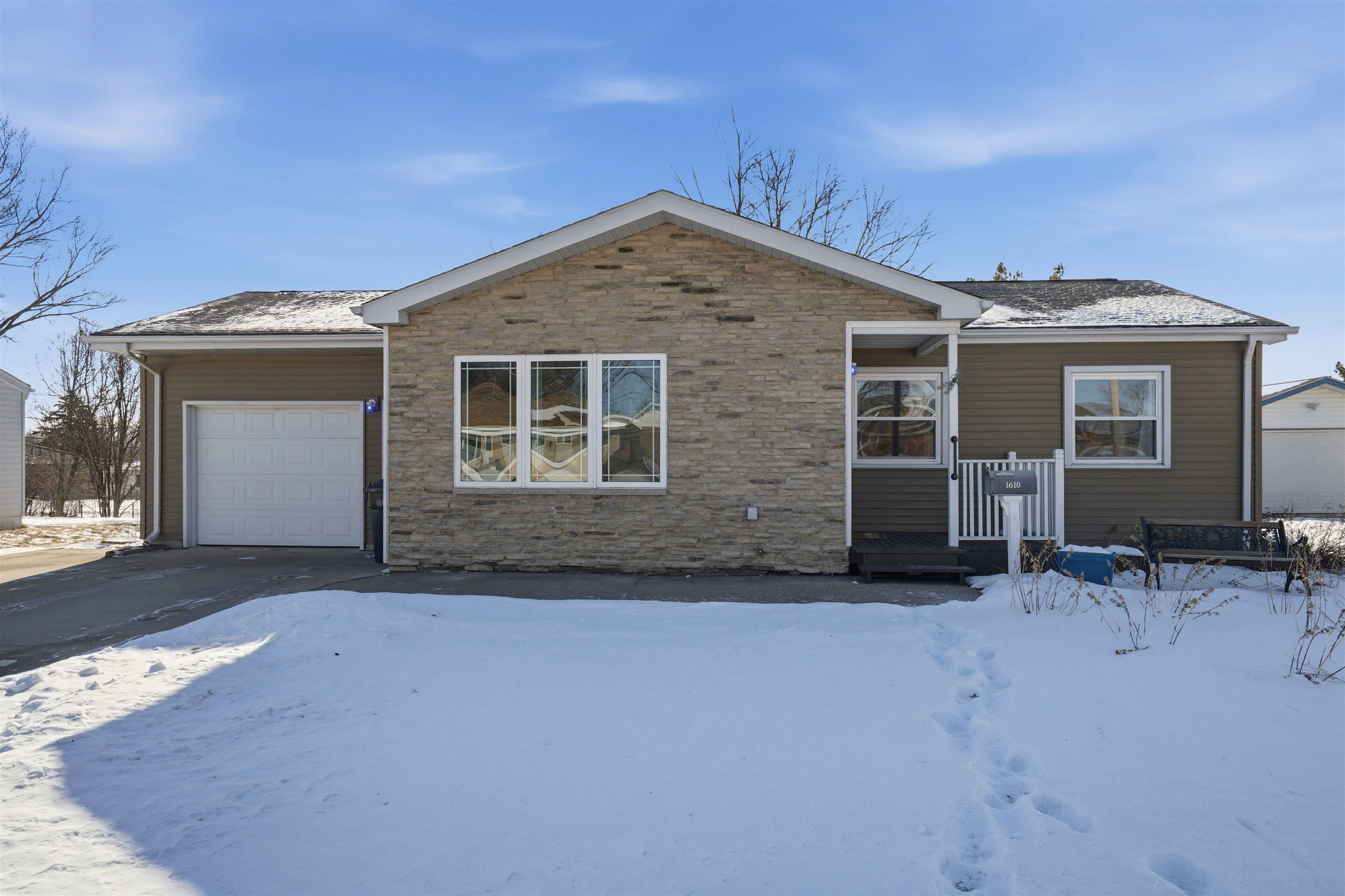 Located in Peosta, this quality-built home offers 5 bedrooms, 3.5 baths, and thoughtful details throughout. The open split-bedroom layout features no-step entry, hardwood floors, and 9-foot ceilings with 10-foot tray accents. The spacious kitchen includes white cabinetry, granite counters, stainless steel appliances, a large island, and convenient main-floor laundry nearby. The living area is warm and inviting with a beautiful fireplace. A 14x12 covered deck, a welcoming front porch, and large patio provide great outdoor spaces to relax. The primary suite includes a tiled walk-in shower and stylish finishes. The finished walkout lower level adds valuable living space with a family room, second fireplace, additional bedrooms, full bath, and access to a lower-level garage. With upgraded exterior siding and exceptional craftsmanship, this Peosta home blends comfort, function, and beautiful design.