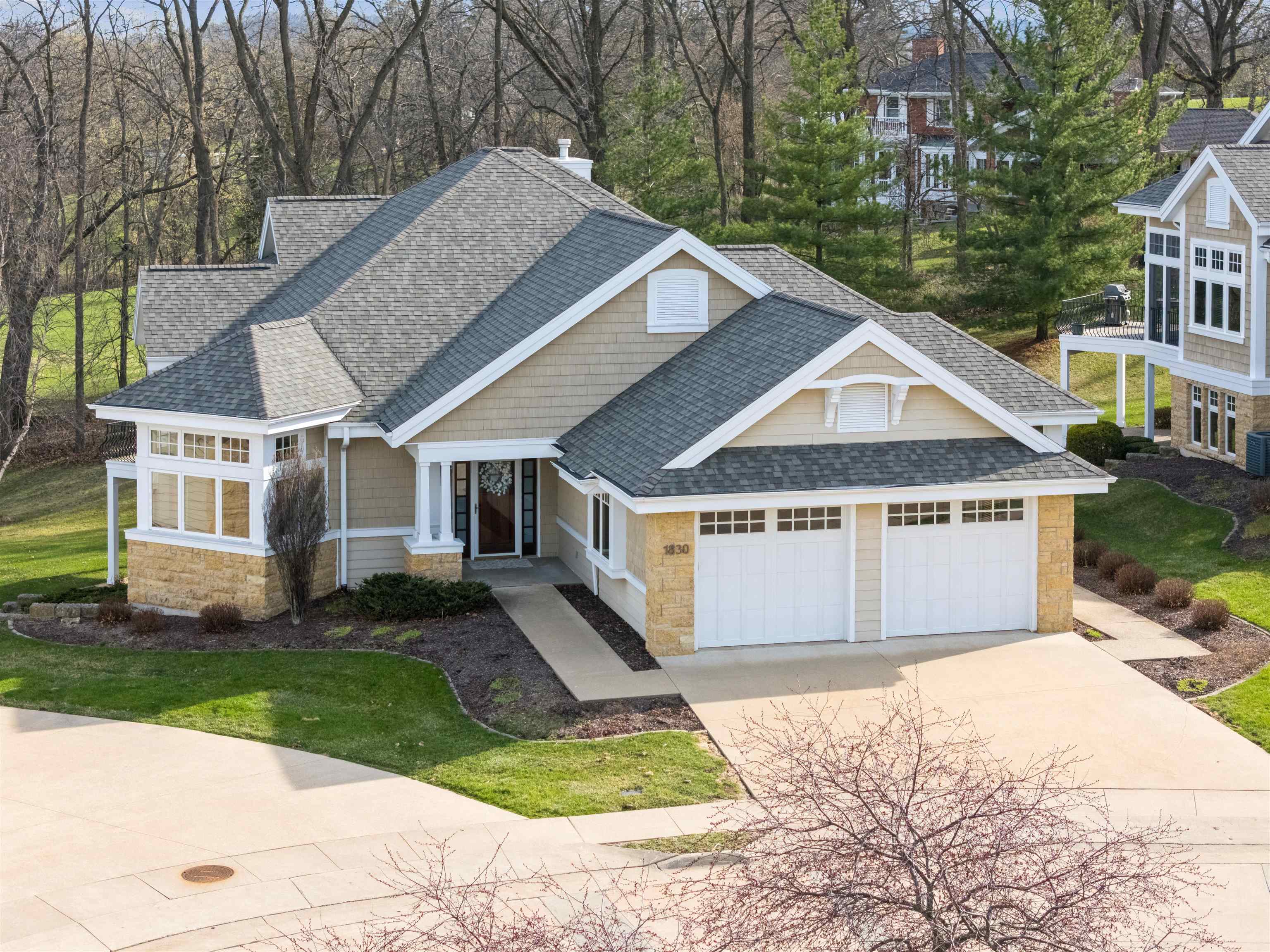 Exclusive stand-alone condo in Dubuqueâ??s South End offering peaceful golf course views, a tree-lined setting, and easy, low-maintenance living. Thoughtfully designed with Brazilian cherry floors, detailed molding, and custom beams that add warmth and character throughout. The main level features a spacious primary suite with walk-in closet and ensuite bath including soaking tub, walk-in shower, and private water closet. A flexible sitting room or bonus space offers the perfect spot for a home office, reading nook, or additional living area. Abundant natural light fills the home. The chefâ??s kitchen is designed for both everyday living and gathering, featuring two islands (prep and serving), an eat-in nook, and adjoining dining area. Enjoy seamless indoor-outdoor living with a screened porch, maintenance-free deck, and lower-level patio surrounded by mature trees and serene views. The walkout lower level offers two spacious bedrooms with a Jack and Jill bath, a comfortable great room with fireplace, and a dedicated movie room. Additional features include zero-entry access and a private elevator for added ease and convenience.--