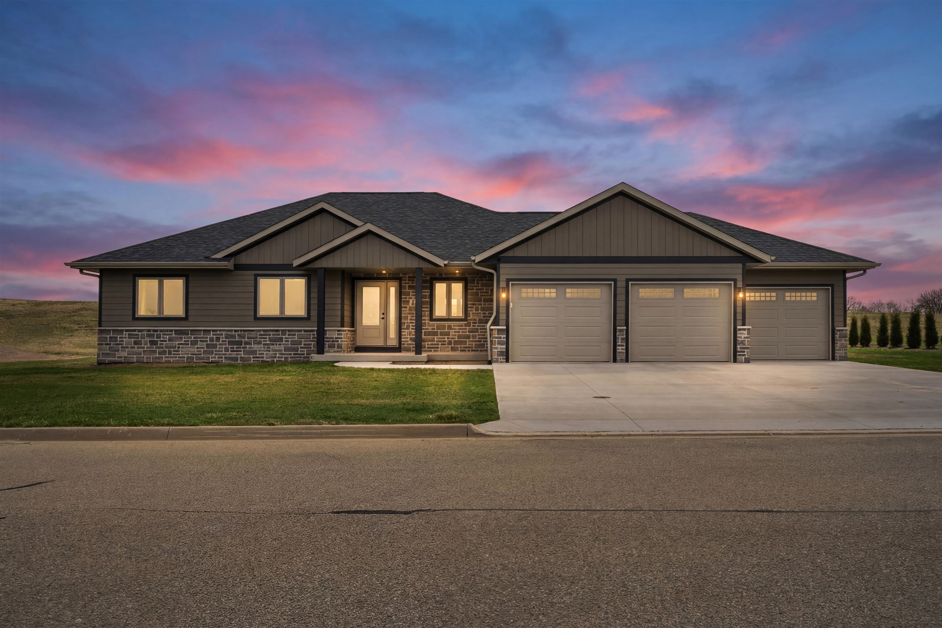 Exquisite custom-built luxury home for sale in Dyersville, Iowa, located on a rare double corner lot in a quiet cul-de-sac. This one-of-a-kind high-end residence offers exceptional craftsmanship, premium finishes, and thoughtful architectural design throughout. From the grand entry with architectural columns to the soaring ceilings and custom millwork, every detail reflects timeless elegance and quality construction. The open-concept living area features a 12-foot tray ceiling, built-in cherry entertainment center with gas fireplace, and Parasound audio system connected to in-ceiling speakers with Sonos integration for seamless wireless control & multi-room audioâ??ideal for luxury entertaining. The gourmet chefâ??s kitchen is a standout with custom cherry cabinetry, quartz countertops, Carrara marble backsplash, high-end convection appliances, induction cooktop, oversized island, and abundant custom storage. A fully equipped butlerâ??s pantry with second refrigerator and dishwasher elevates functionality and hosting potential. The private main-level primary suite offers French-door access, a spa-inspired ensuite with zero-entry tiled shower, custom cabinetry, and a walk-in closet with built-ins and dressing areaâ??perfect for buyers seeking luxury single-level living. Additional bedrooms include walk-in closets and adjoining baths. The daylight lower level is framed and ready for expansion with multiple bathroom rough-ins, offering future flexibility for additional bedrooms, theater space, or fitness room. Outdoor living is equally impressive with a vaulted sunroom, elevated covered porch, and custom pergola patioâ??each wired for soundâ??creating seamless indoor-outdoor entertaining. The heated 3+ car garage includes hot and cold water, floor drains, workshop storage, and direct basement access. Built by respected local craftsmen, this luxury home in Eastern Iowa features commercial-grade HVAC, zoned heating and cooling, in-floor basement heat, central vacuum, and professiona